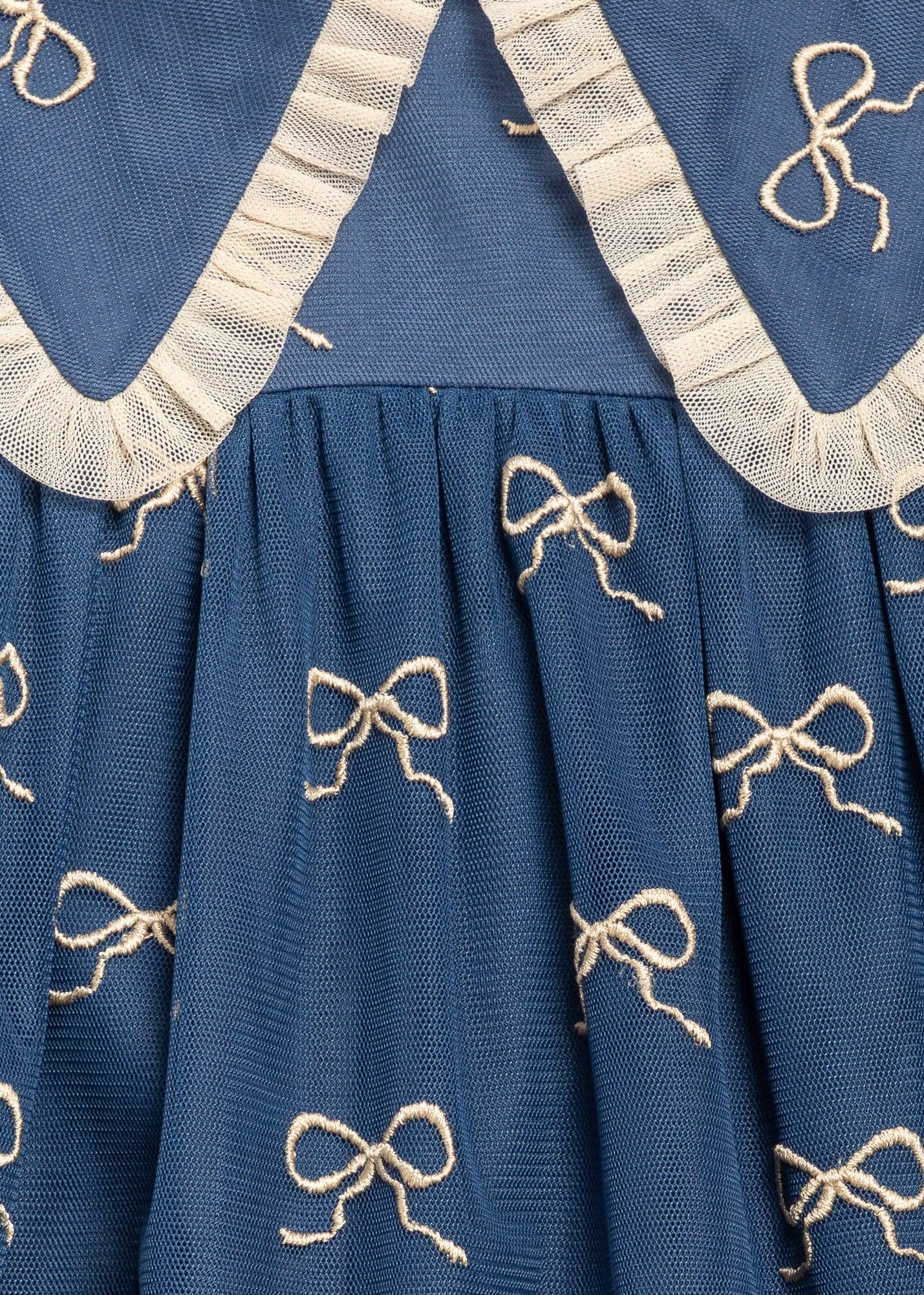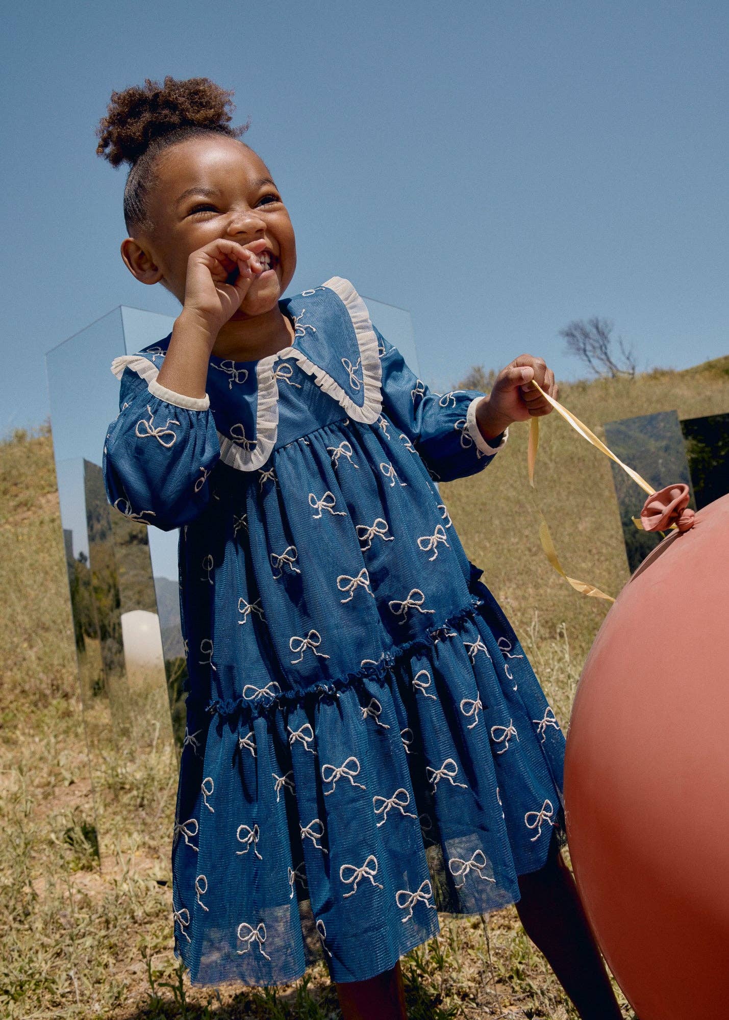 Your little one will look as pretty as a present in the woven Bowie Dress by Finding Foxtale. This dress is the best gift around with delicately embroidered bows, layers of tulle mesh lined in lightweight cotton, and ruffle details that feel sweet and feminine. In a beautiful blue shade, this dress will complement the spirit of the holidays and be versatile enough to wear beyond the season—think birthday parties, parent/child dances, school performances, and more!