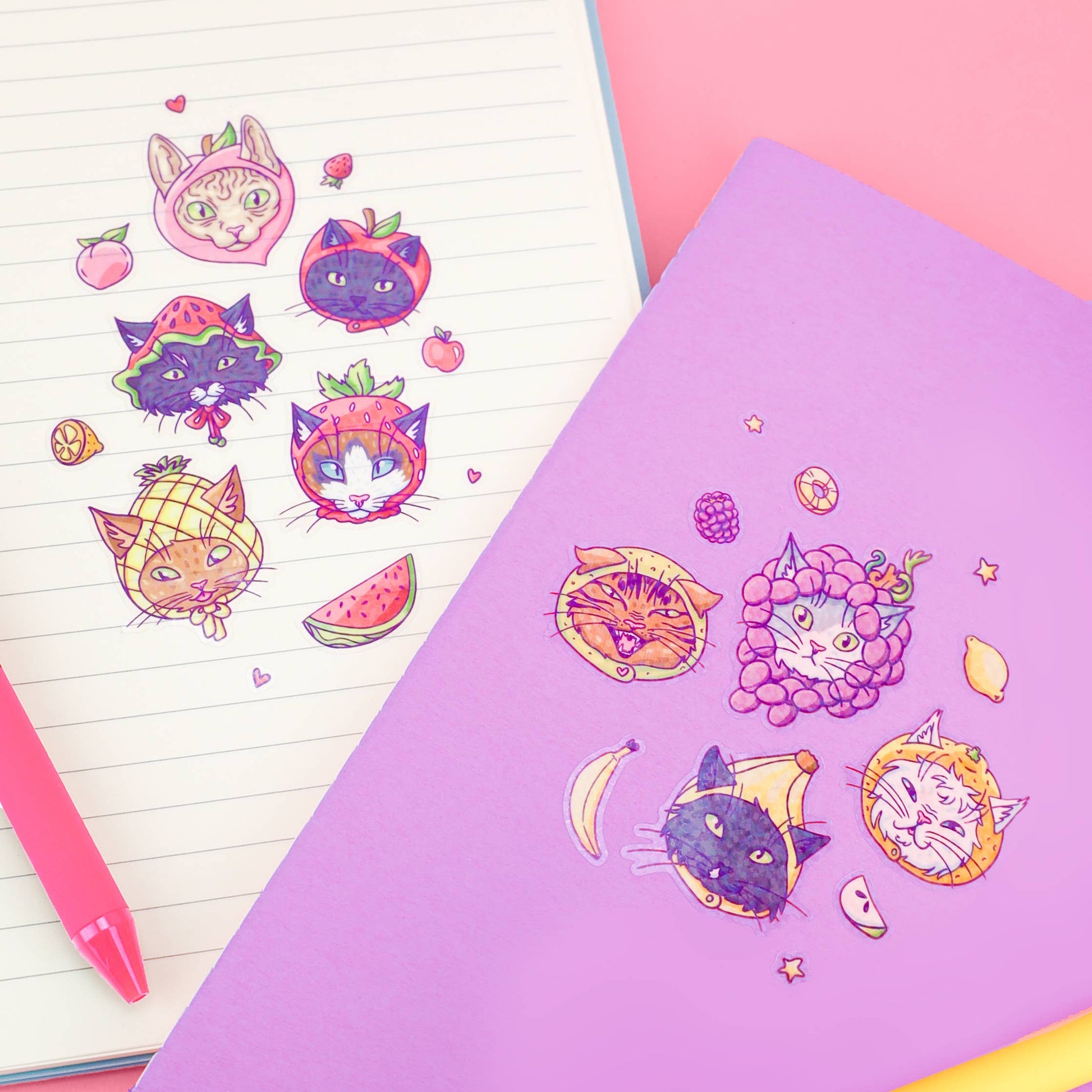 Fruit Hat Cats Cute Kitty Art Stationery Vinyl Sticker Sheet